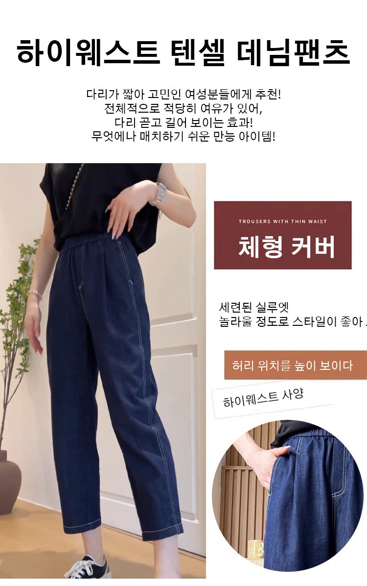 여성 8 부 데님 팬츠