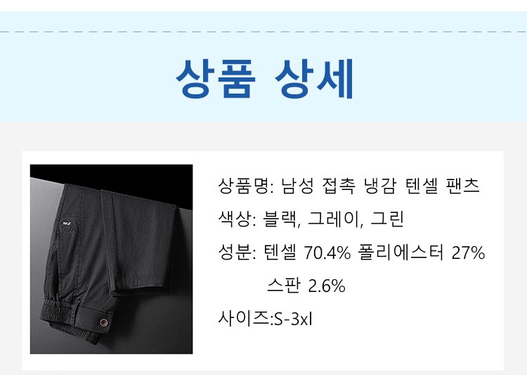 접촉 냉감 효과를 보여주는 남성 팬츠